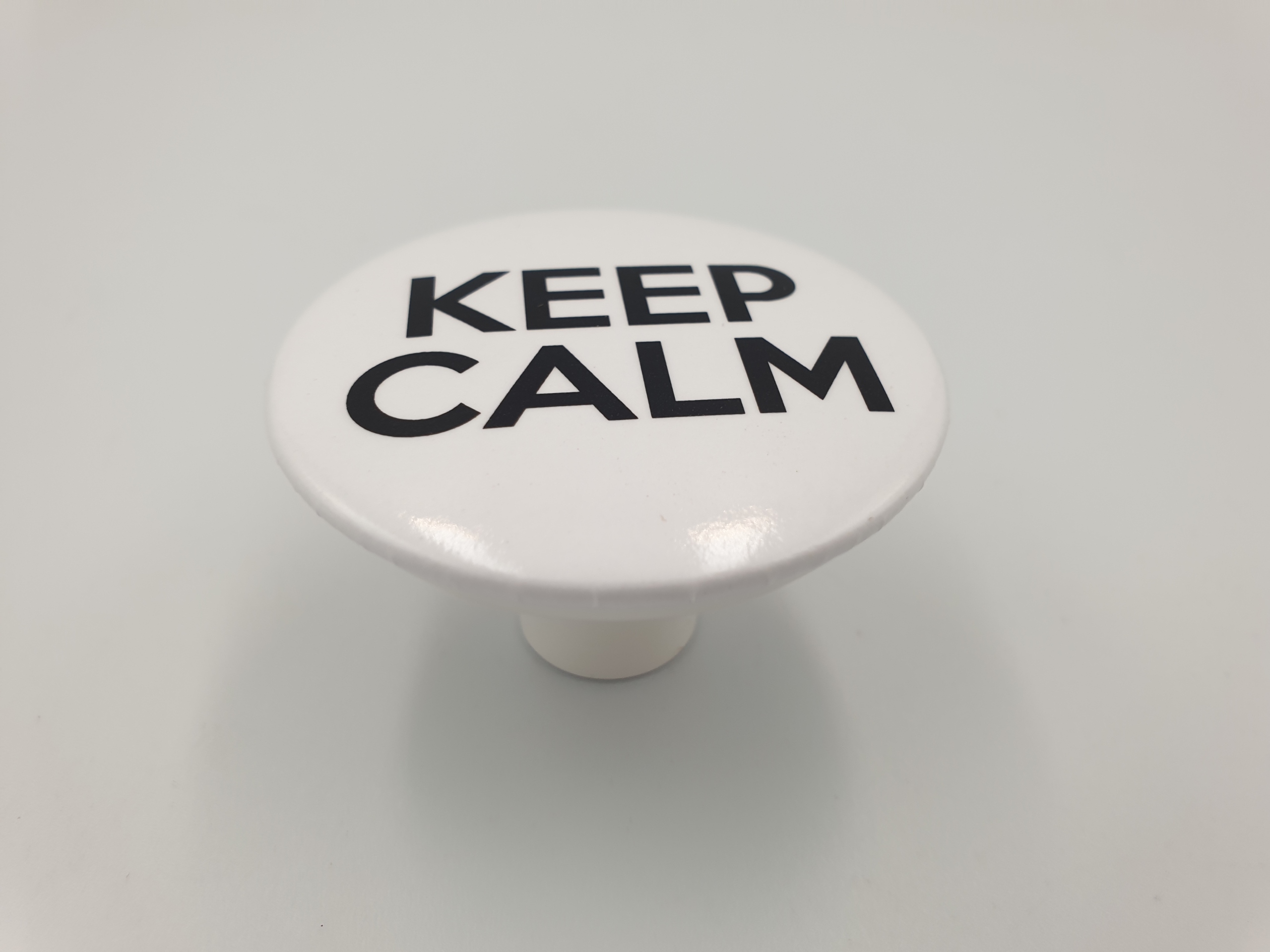 Zapraszamy do zakupu unikatowej gałki meblowej w kolorze białym z motywem "Keep Calm"! Ta niezwykła gałka o młodzieżowym stylu doda Twoim meblom niebanalnego wyglądu, który przyciągnie spojrzenia każdego, kto wejdzie do Twojego pomieszczenia.