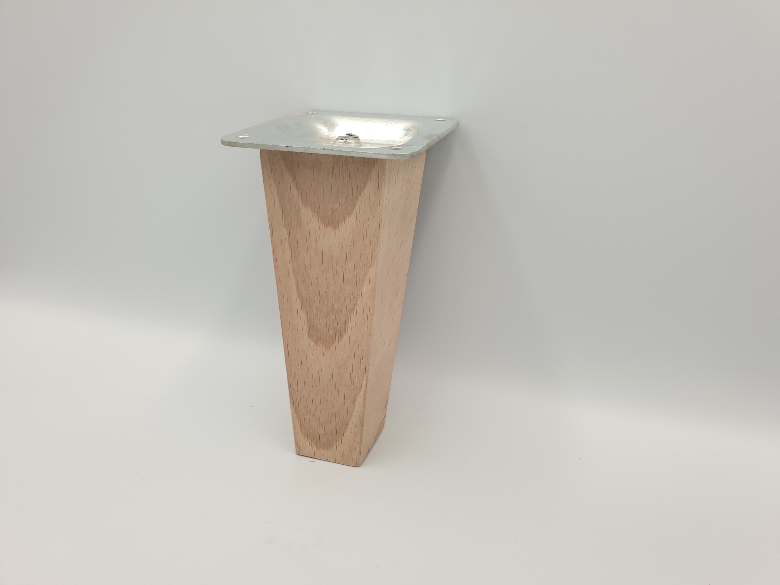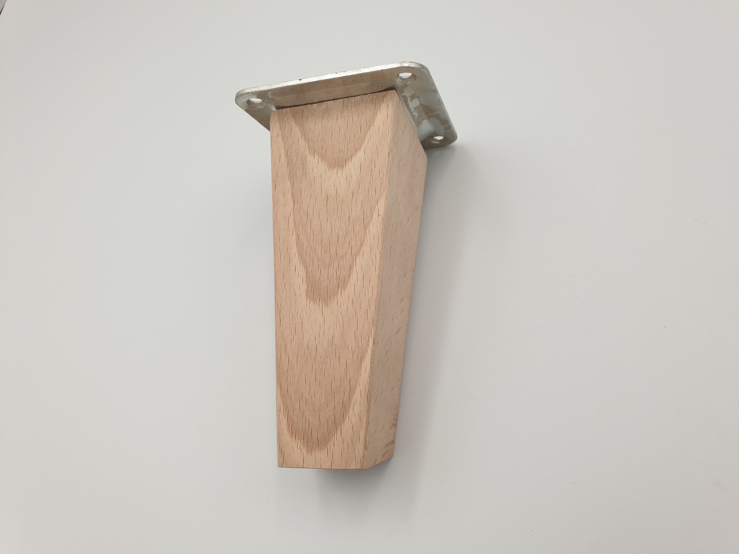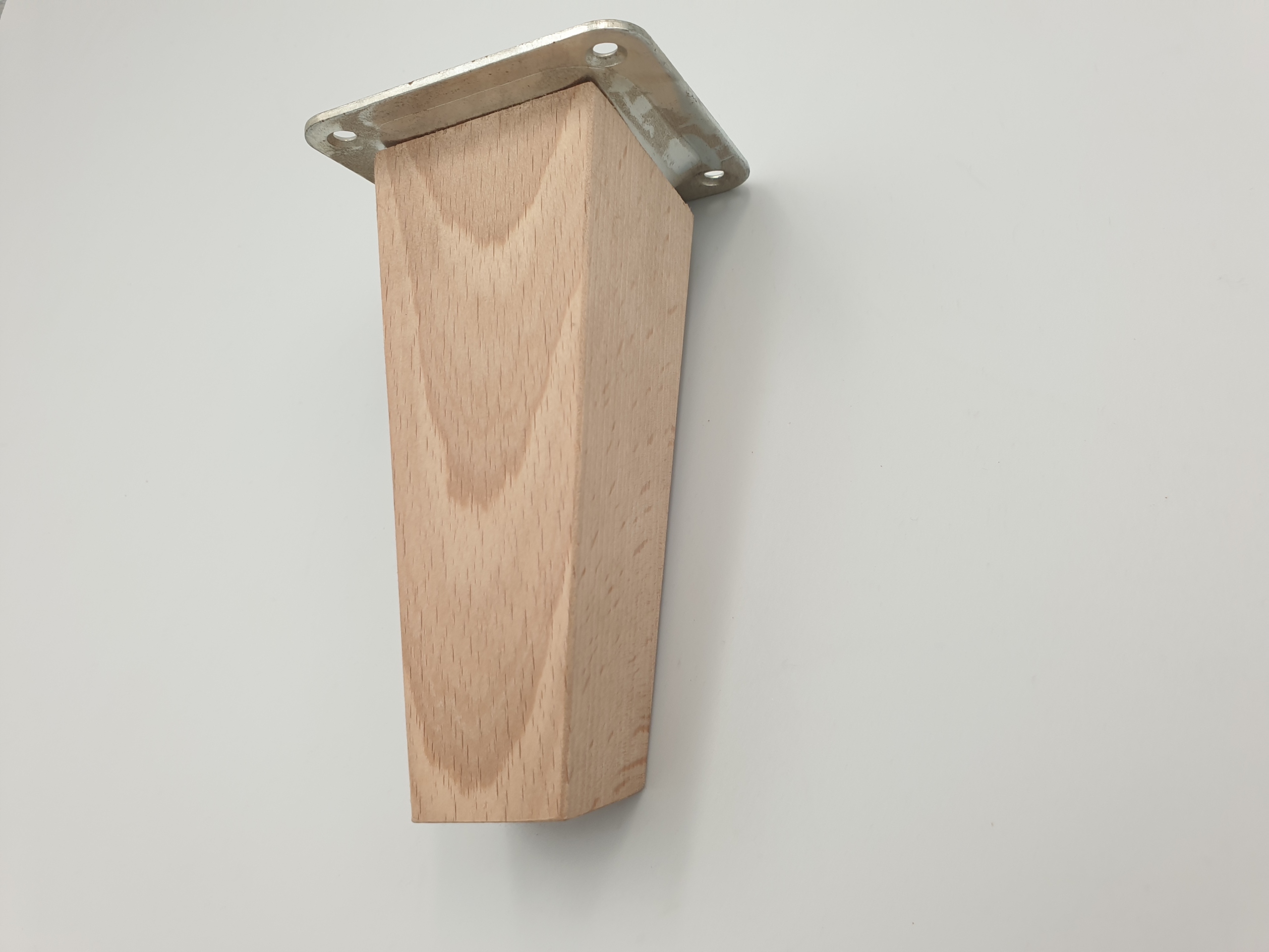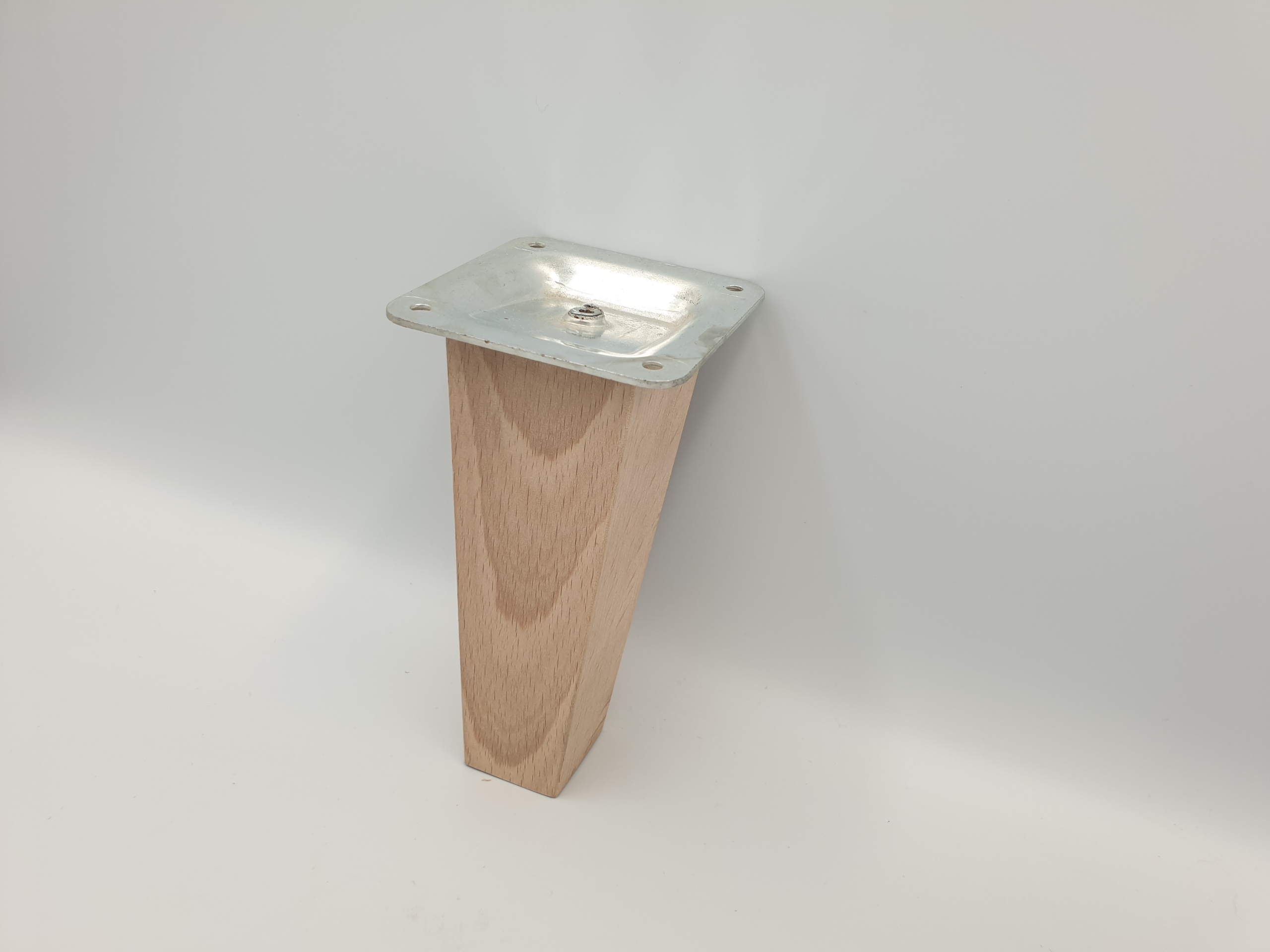 Nóżka skośna do mebli trapez buk 12 cm z blachą (675)