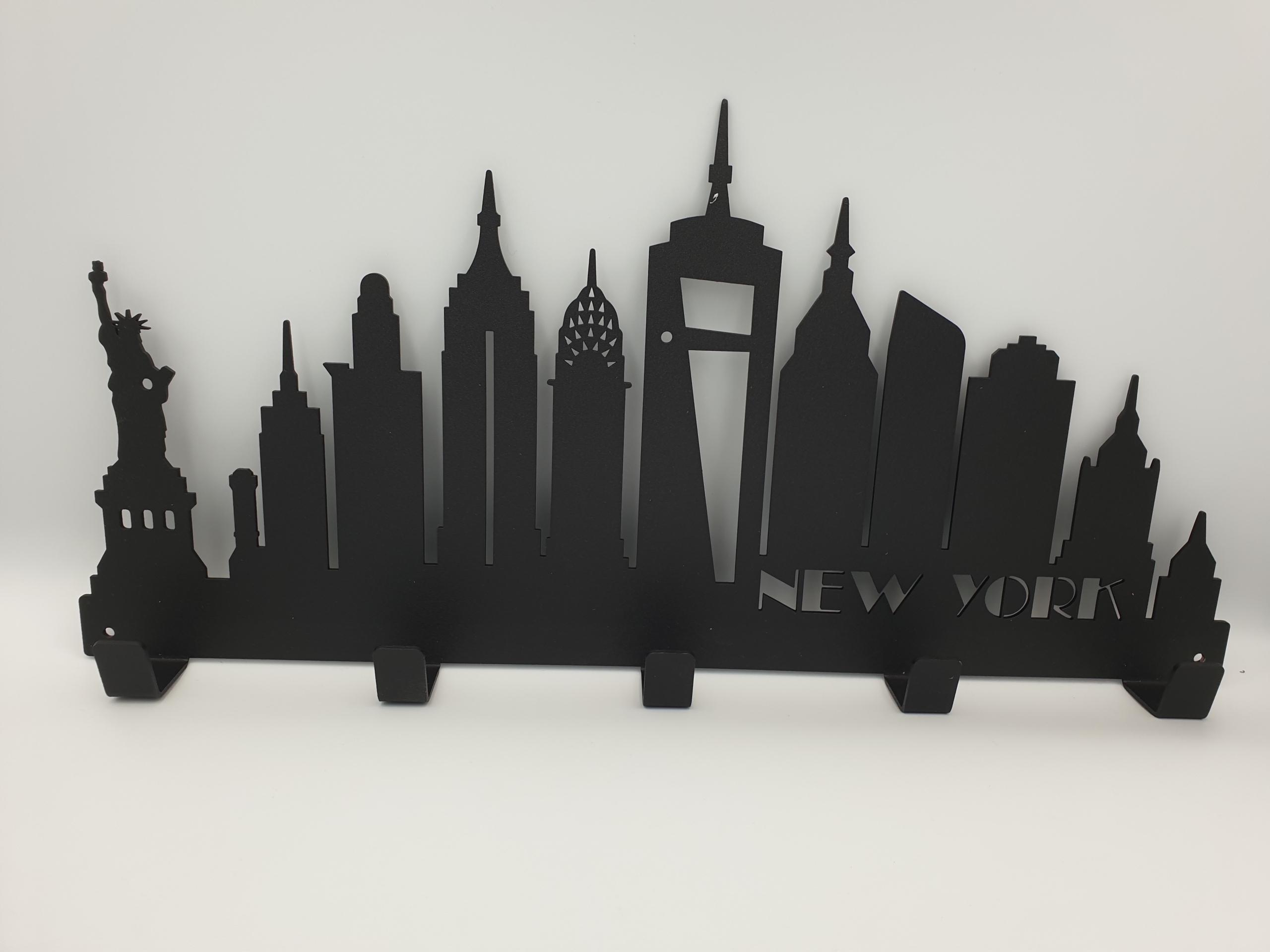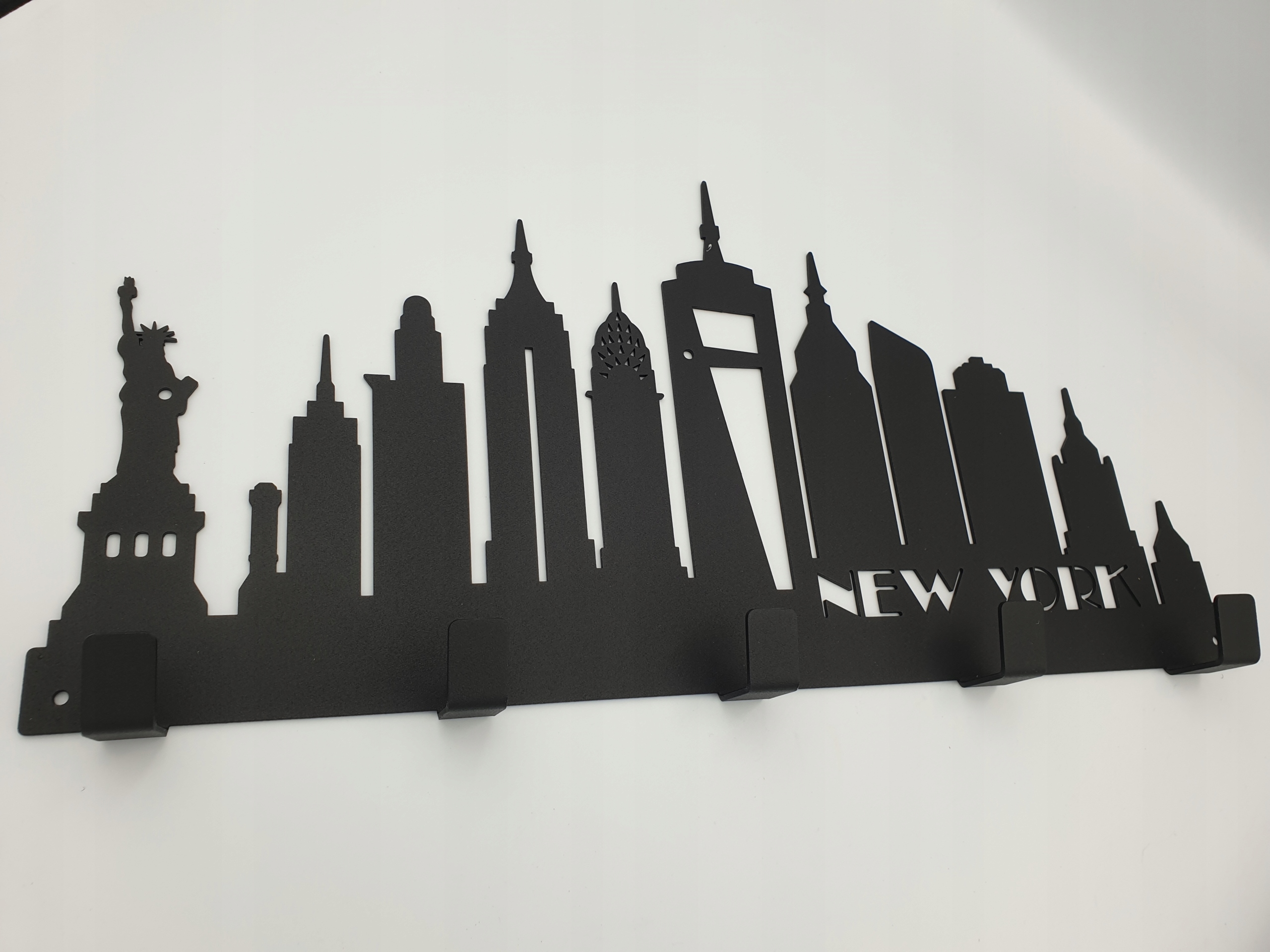 Marzysz o unikalnym elemencie dekoracyjnym, który nie tylko praktycznie posłuży Ci do przechowywania ubrań, ale także wzbogaci Twoje wnętrze o niepowtarzalny klimat? Ten wieszak z wyciętym laserowo motywem miasta Nowy Jork spełni Twoje oczekiwania!